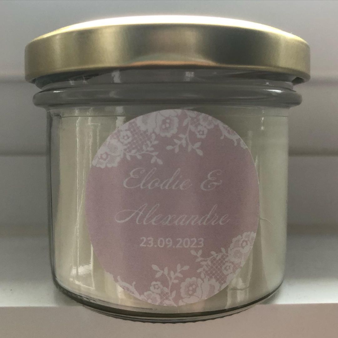 Voici la bougie du mariage d’Elodie et Alexandre qui était le cadeau offert aux invités, senteur rose 🌹