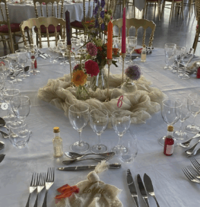 La décoration colorée a été pensée en binôme avec Les merveilles de meli, sublimée par le bouquet de la mariée et les accessoires signés Flower by may, sans oublier la mise en fleurs élégante réalisée par Efflorescence bbg.